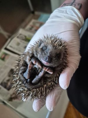 Auf dem Bild ist ein junger Igel zu sehen, den eine aufmerksame Tierliebhaberin gefunden hat.