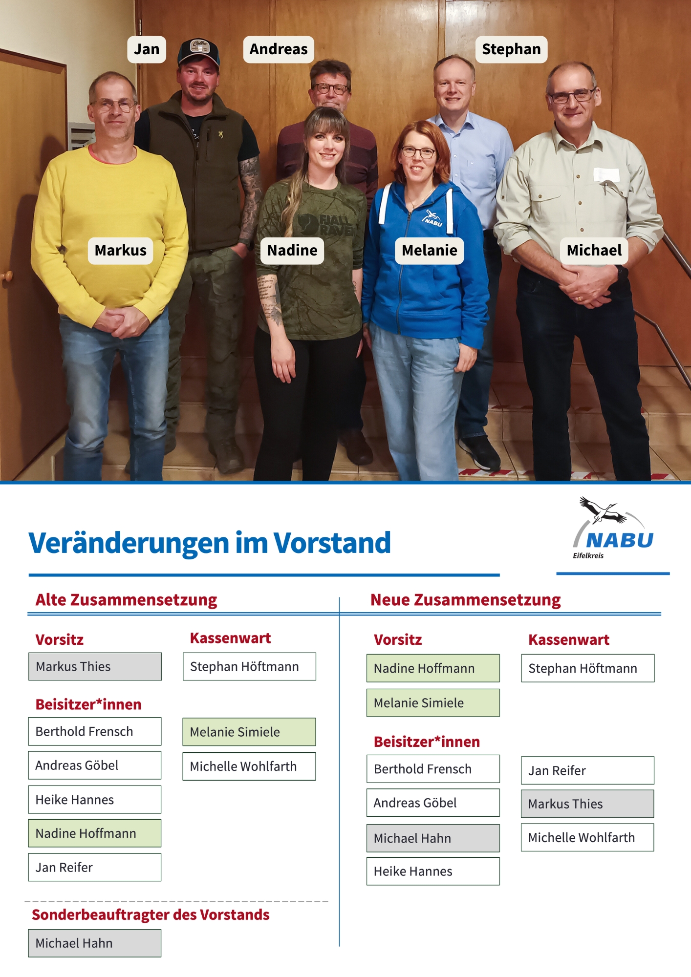 Michael Hahn, ebenfalls langjähriger Vorsitzender unserer NABU Gruppe, kehrt nach einer persönlichen Auszeit in den Vorstand zurück und bringt zukünftig sein Engagement in der Rolle des Beisitzenden ein.